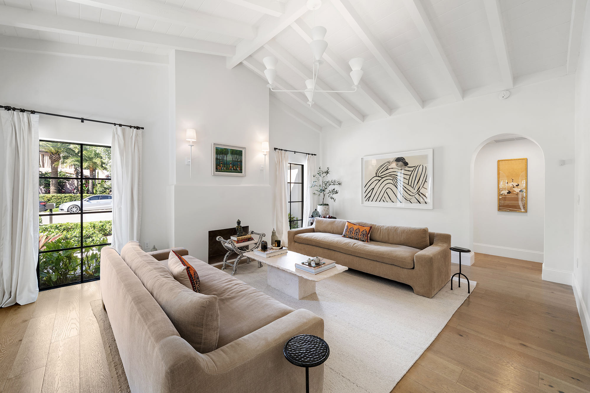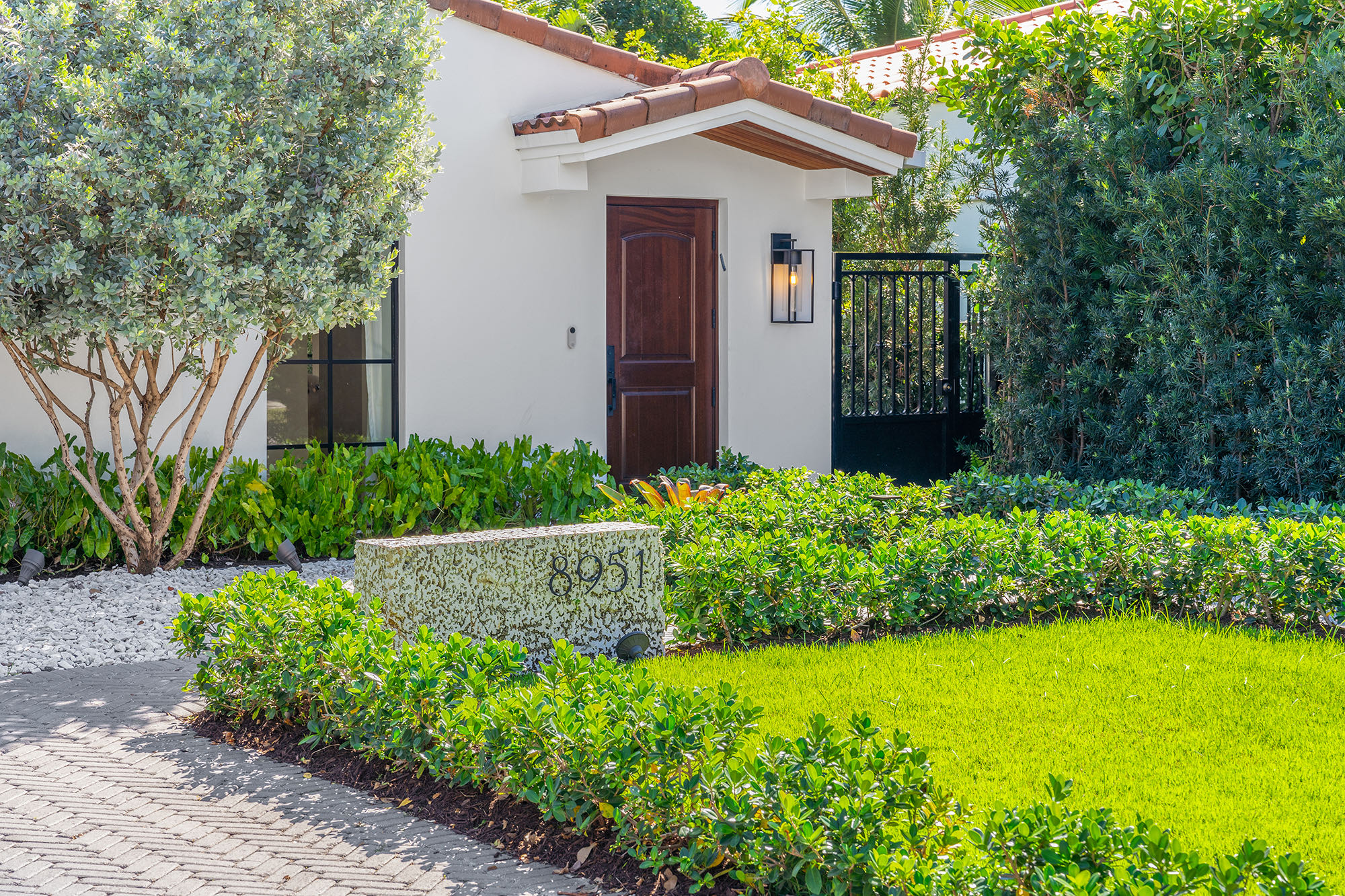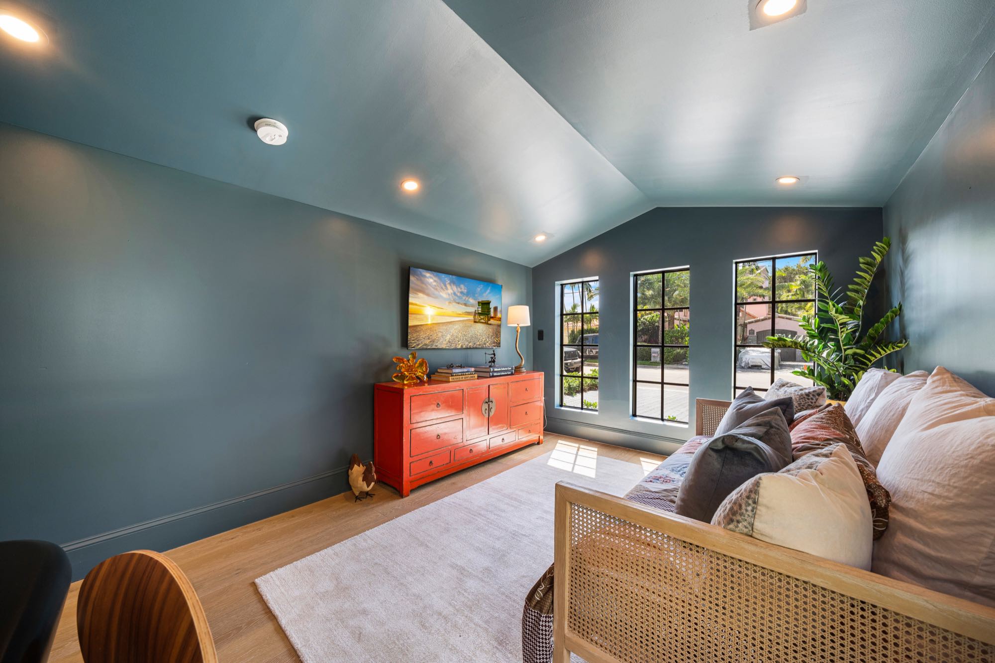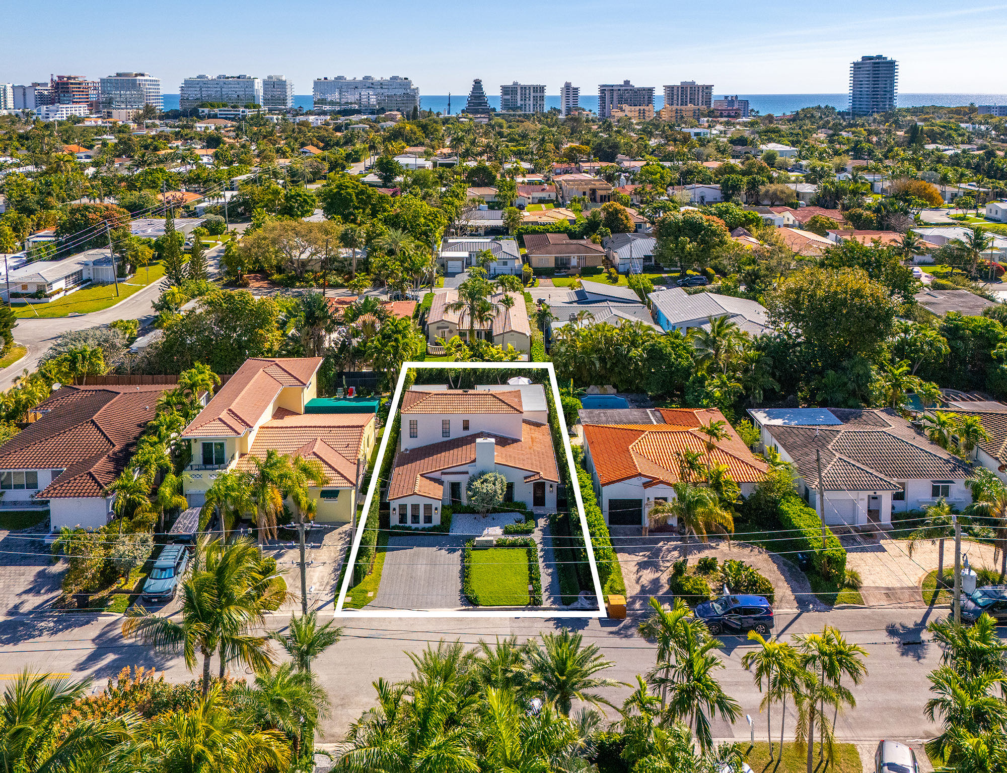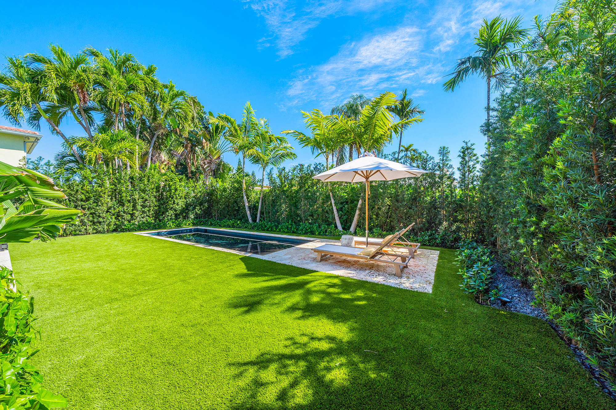 This spacious, fully remodeled two-story home (2,681 SF) blends modern elegance with high-end finishes. Filled with natural light, it features 3 bedrooms, 3 updated bathrooms, hardwood floors, porcelain tile in the hallway, terrazzo tile in the nursery bathroom, and Florida shellstone in the master bathroom. Redone in 2023 with new electrical, HVAC, plumbing, pool, and flat roof. Luxury touches include Italian doors, Ralph Lauren curtains, Sonos sound, and a marble kitchen island. The quartzite kitchen flows into the dining area, overlooking a fruit tree garden. French doors open to a deck & backyard with a pool and barbecue. Features security cameras, impact windows, landscape lighting, artificial turf & sprinkler system. Near the beach, Bal Harbour & A-rated Bay Harbor Schools.