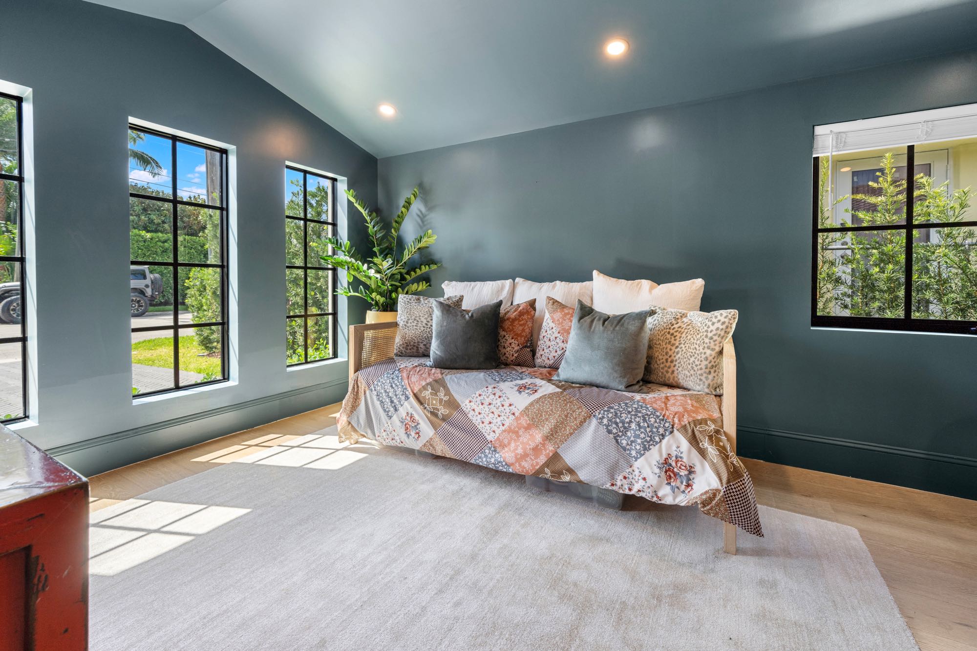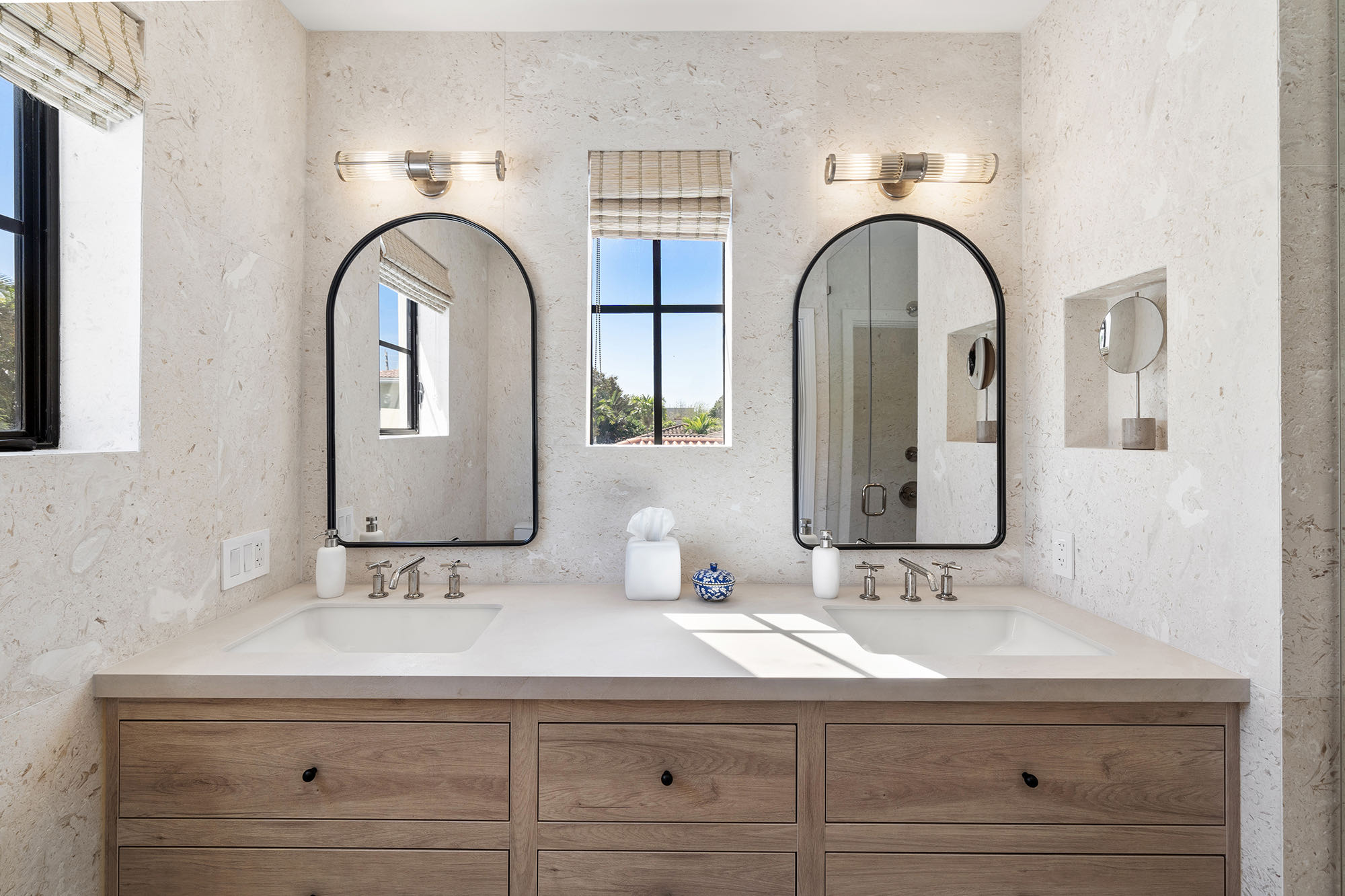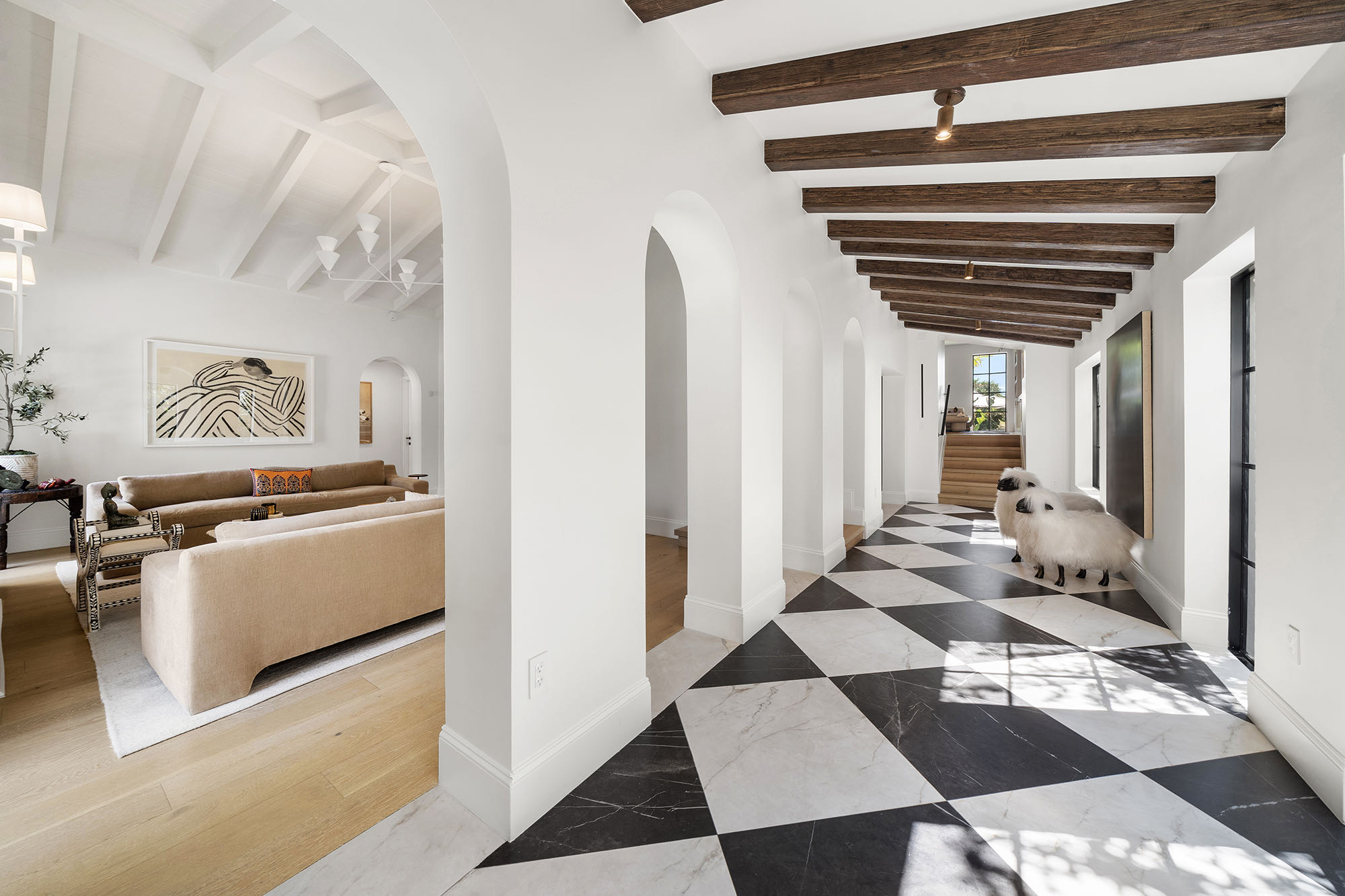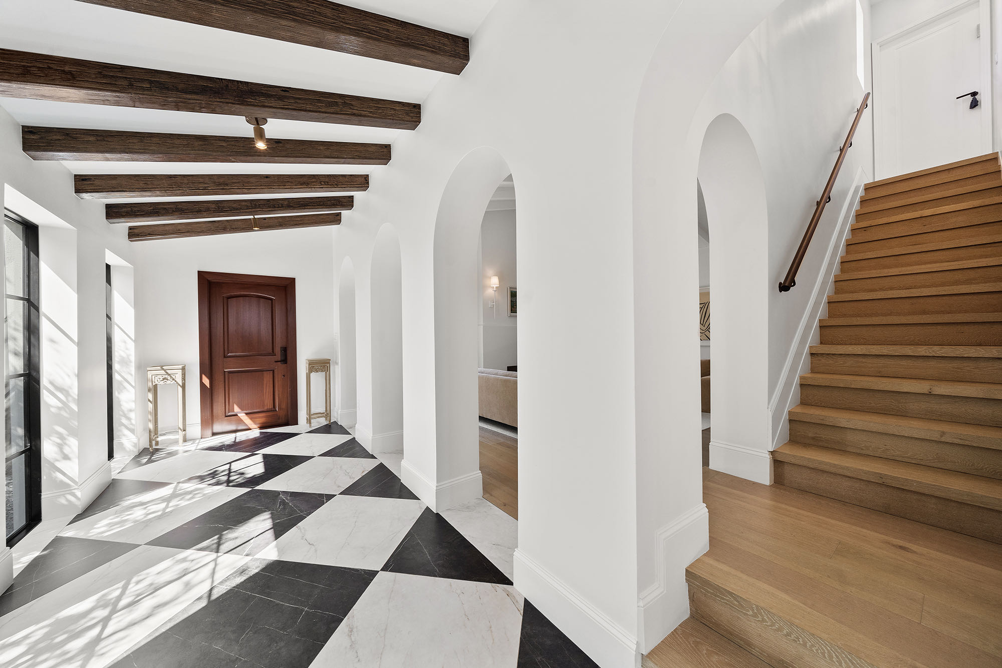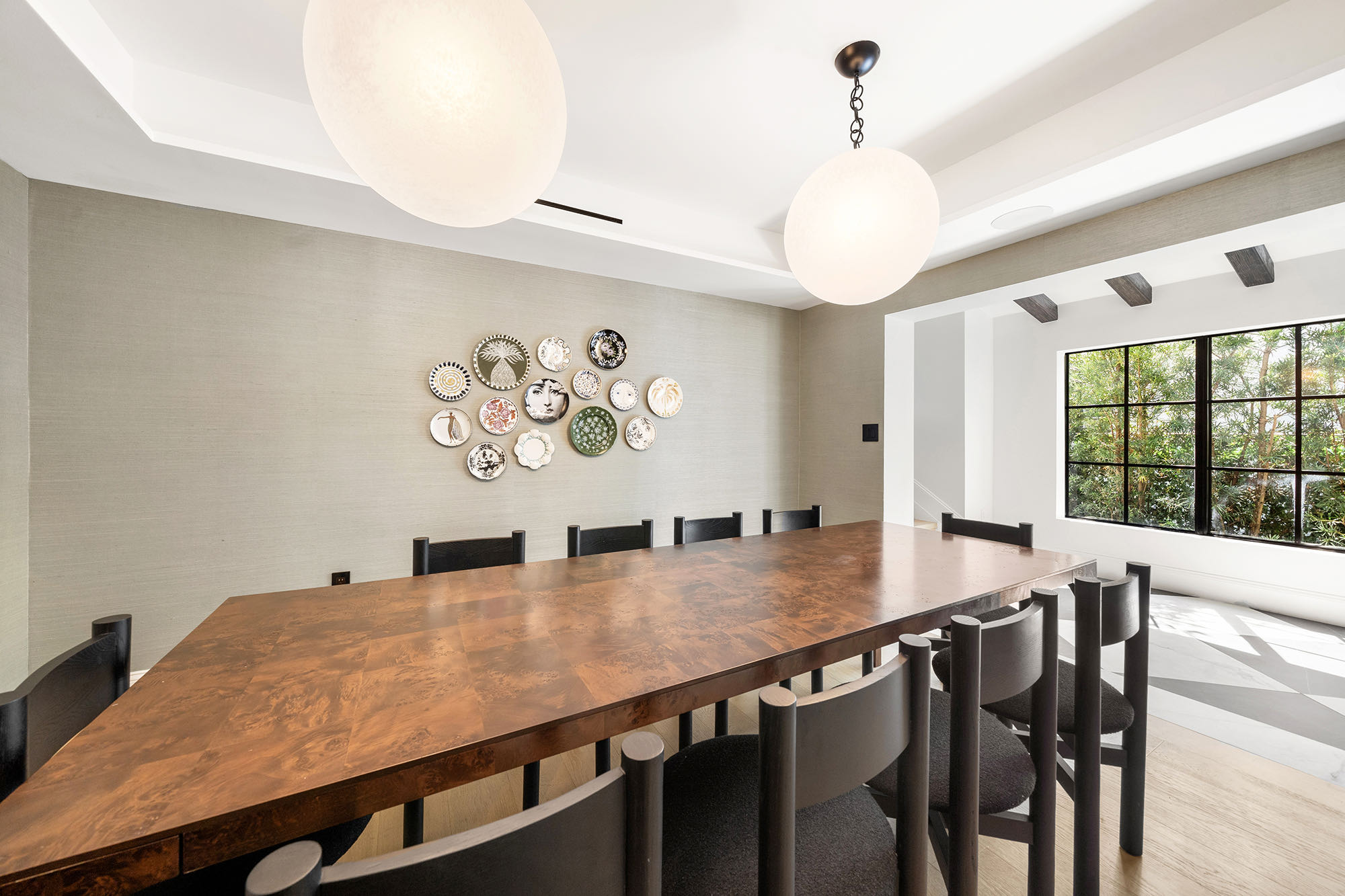 This spacious, fully remodeled two-story home (2,681 SF) blends modern elegance with high-end finishes. Filled with natural light, it features 3 bedrooms, 3 updated bathrooms, hardwood floors, porcelain tile in the hallway, terrazzo tile in the nursery bathroom, and Florida shellstone in the master bathroom. Redone in 2023 with new electrical, HVAC, plumbing, pool, and flat roof. Luxury touches include Italian doors, Ralph Lauren curtains, Sonos sound, and a marble kitchen island. The quartzite kitchen flows into the dining area, overlooking a fruit tree garden. French doors open to a deck & backyard with a pool and barbecue. Features security cameras, impact windows, landscape lighting, artificial turf & sprinkler system. Near the beach, Bal Harbour & A-rated Bay Harbor Schools.