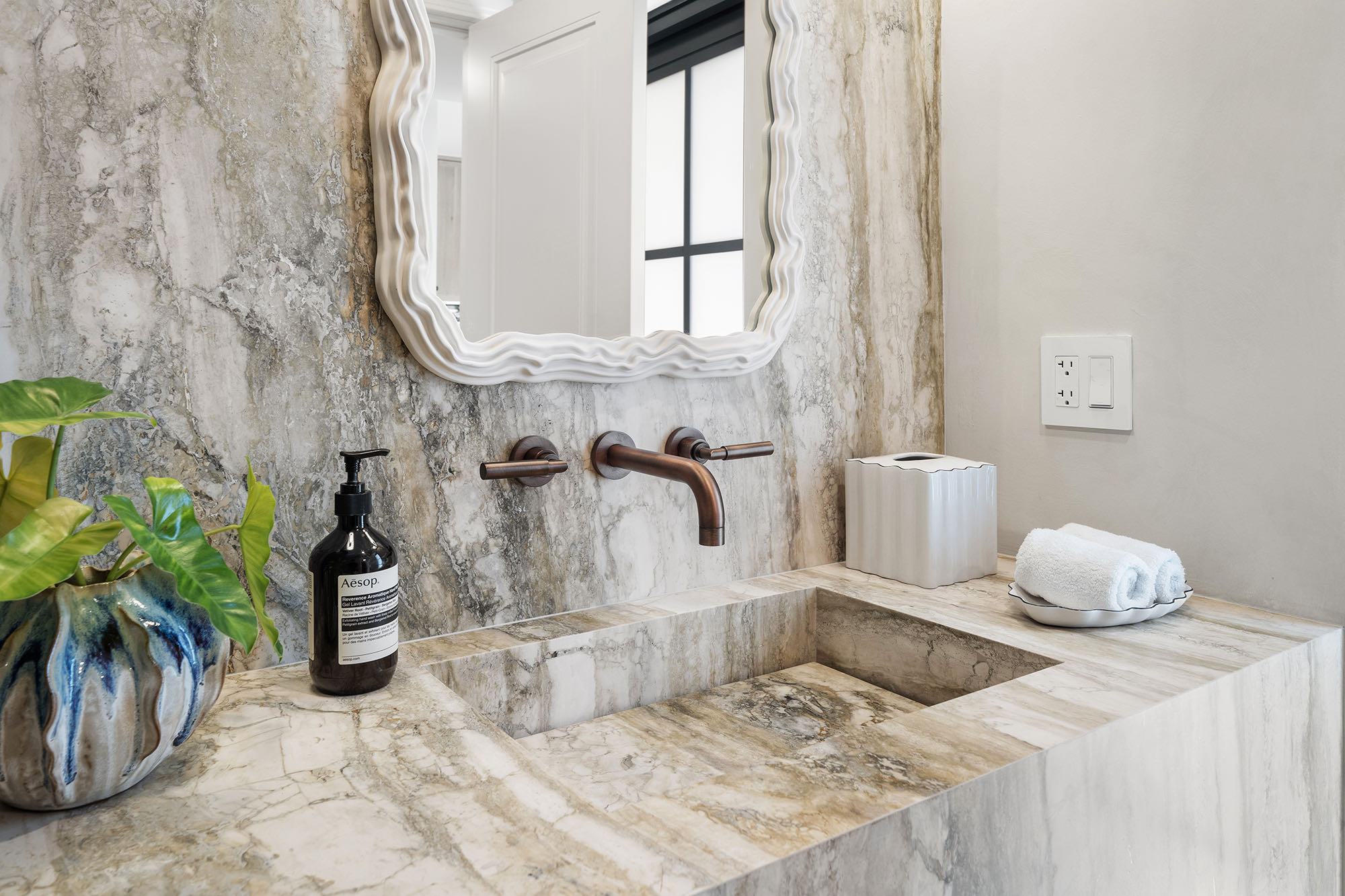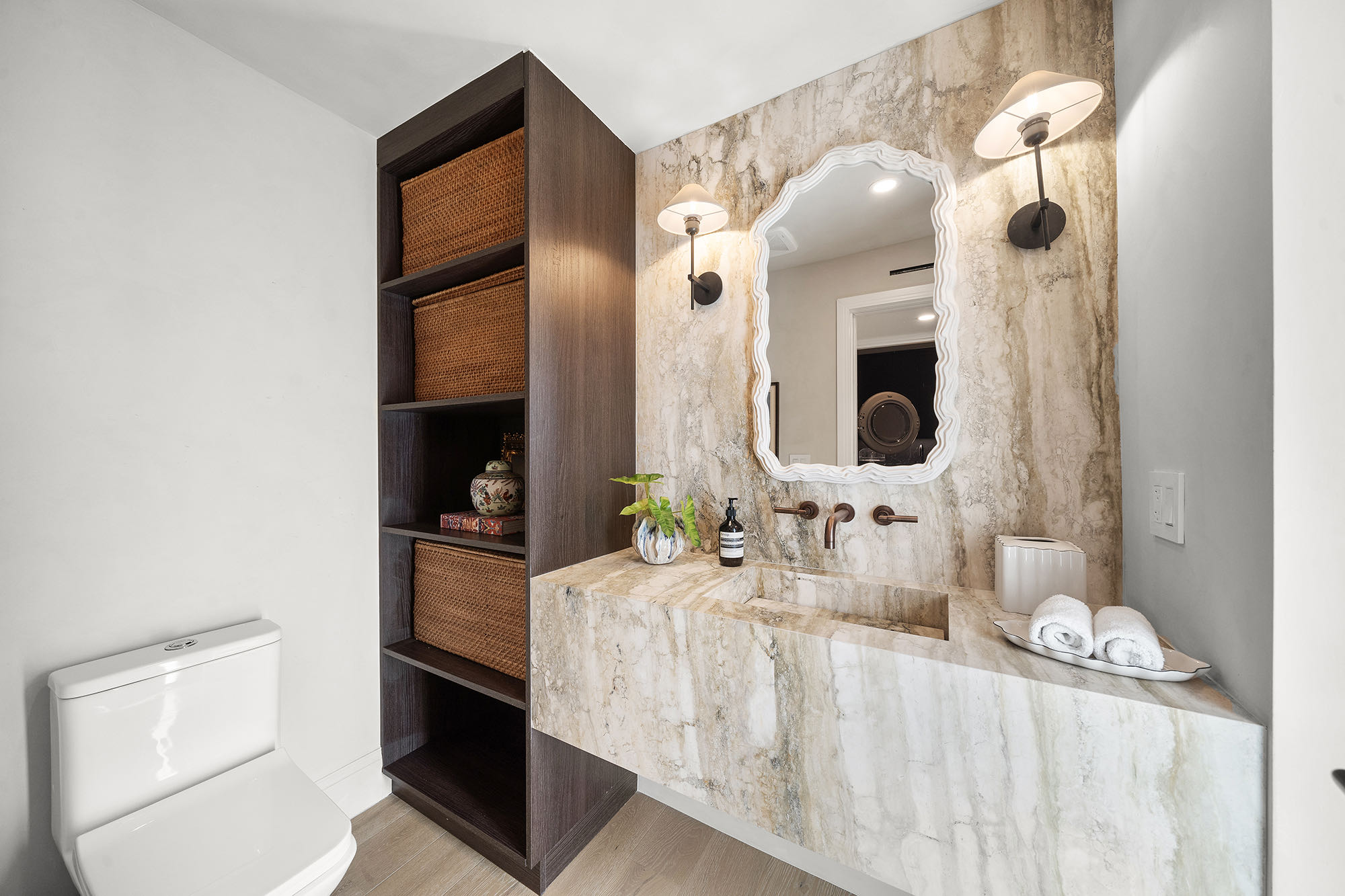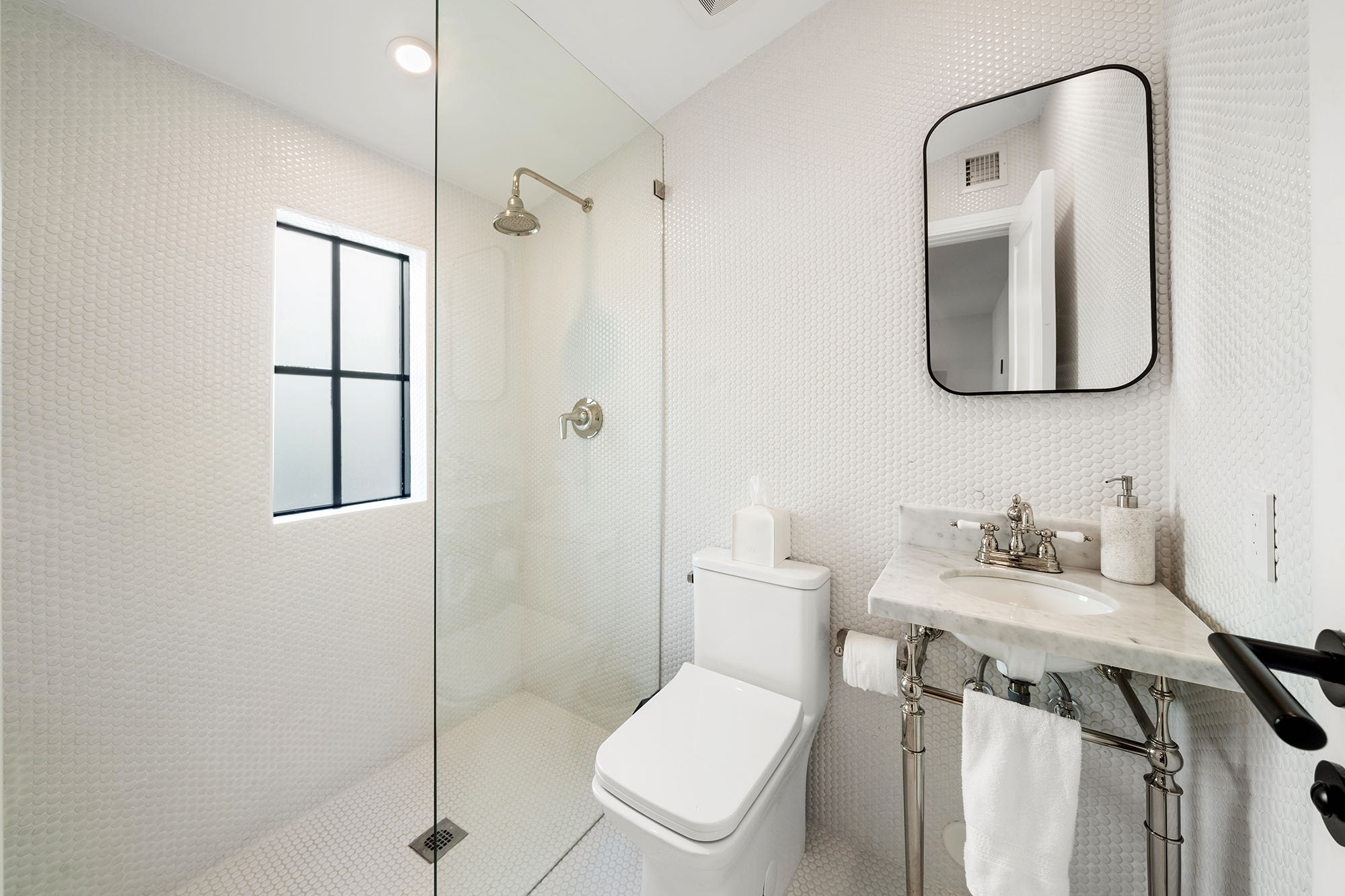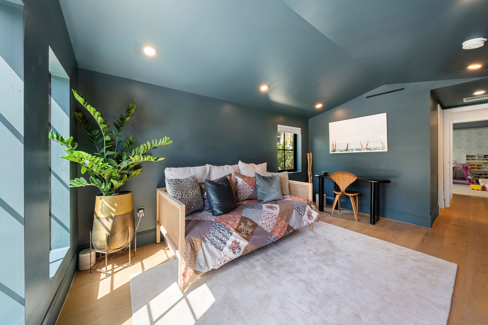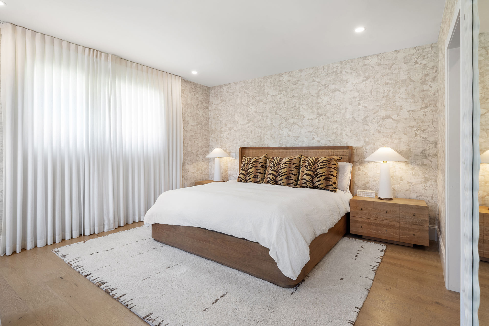 This spacious, fully remodeled two-story home (2,681 SF) blends modern elegance with high-end finishes. Filled with natural light, it features 3 bedrooms, 3 updated bathrooms, hardwood floors, porcelain tile in the hallway, terrazzo tile in the nursery bathroom, and Florida shellstone in the master bathroom. Redone in 2023 with new electrical, HVAC, plumbing, pool, and flat roof. Luxury touches include Italian doors, Ralph Lauren curtains, Sonos sound, and a marble kitchen island. The quartzite kitchen flows into the dining area, overlooking a fruit tree garden. French doors open to a deck & backyard with a pool and barbecue. Features security cameras, impact windows, landscape lighting, artificial turf & sprinkler system. Near the beach, Bal Harbour & A-rated Bay Harbor Schools.